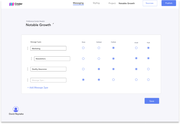 WYSIWYG editor to quickly build your preference center from scratch, allowing customers to choose their own experience.